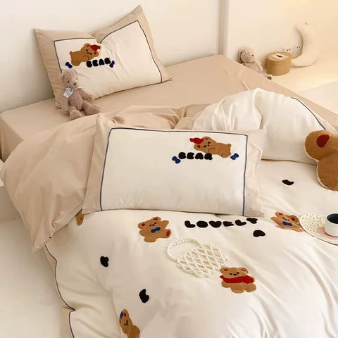 Juego de ropa de cama de 4 piezas con estampado de dibujos animados al por mayor 100s algodón de fibra larga con sensación acogedora para la decoración de la habitación de los niños