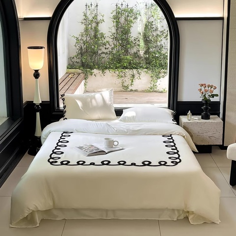 Ensemble de housse de couette de luxe 100% coton Couette et drap de lit de style moderne