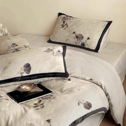 Vintage Bloom Luxe Velvet Bedding Set Thickened Winter Milk Velvet Comfort