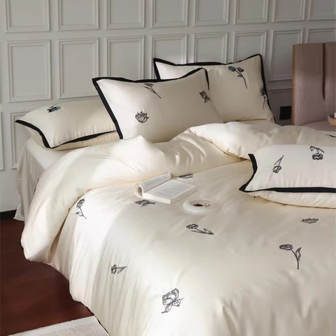 Midnight Blossom Series 100% cetim cama folha estilo moderno com linho enchimento